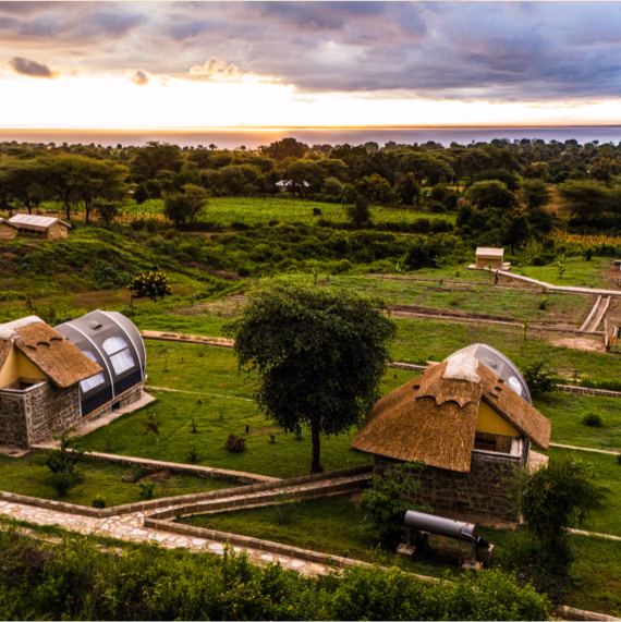 Northern Highlands & Lake Eyasi: Perched atop a hill, the lodge offers breathtaking, panoramic views of the Northern Highlands and the plains extending toward Lake Eyasi.
